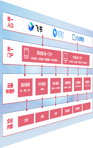 对协作平台提供支持服务,,,,支持企业应用与协作平台对接,,包含组织同步、、、消息集成、、待办集成等。。。支持目前主流的协作平台:钉钉、、企微和飞书。。。